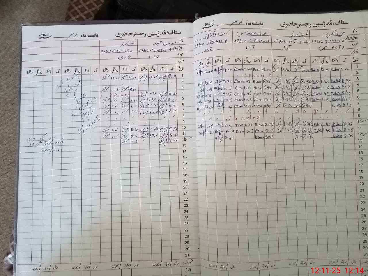 | CNIC | Full Name | Designation | R/C | Absence During Last Calender Month |