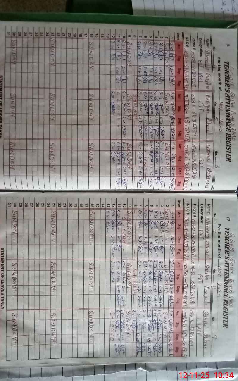 | Remarks (Use Separate Page if Required): CHOKIDAR AMJAD RIAZ UNAUTHORIZED ABSENT SINCE 30 OCTOBER 2025 | |||||