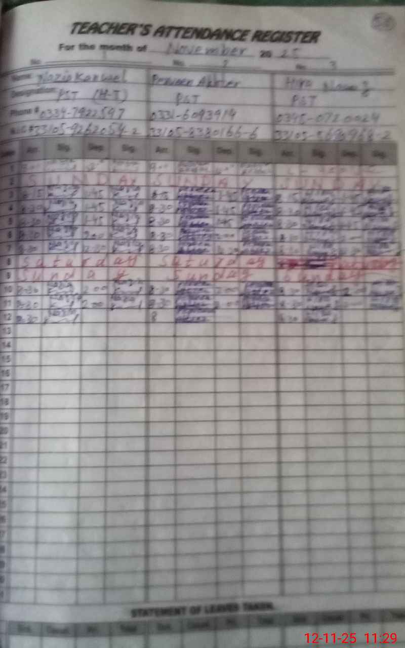 | Name: NA**** KA**** Designation: (School Headmaster's/Headmistress's) PST Phone/Cell Number: 03**** |