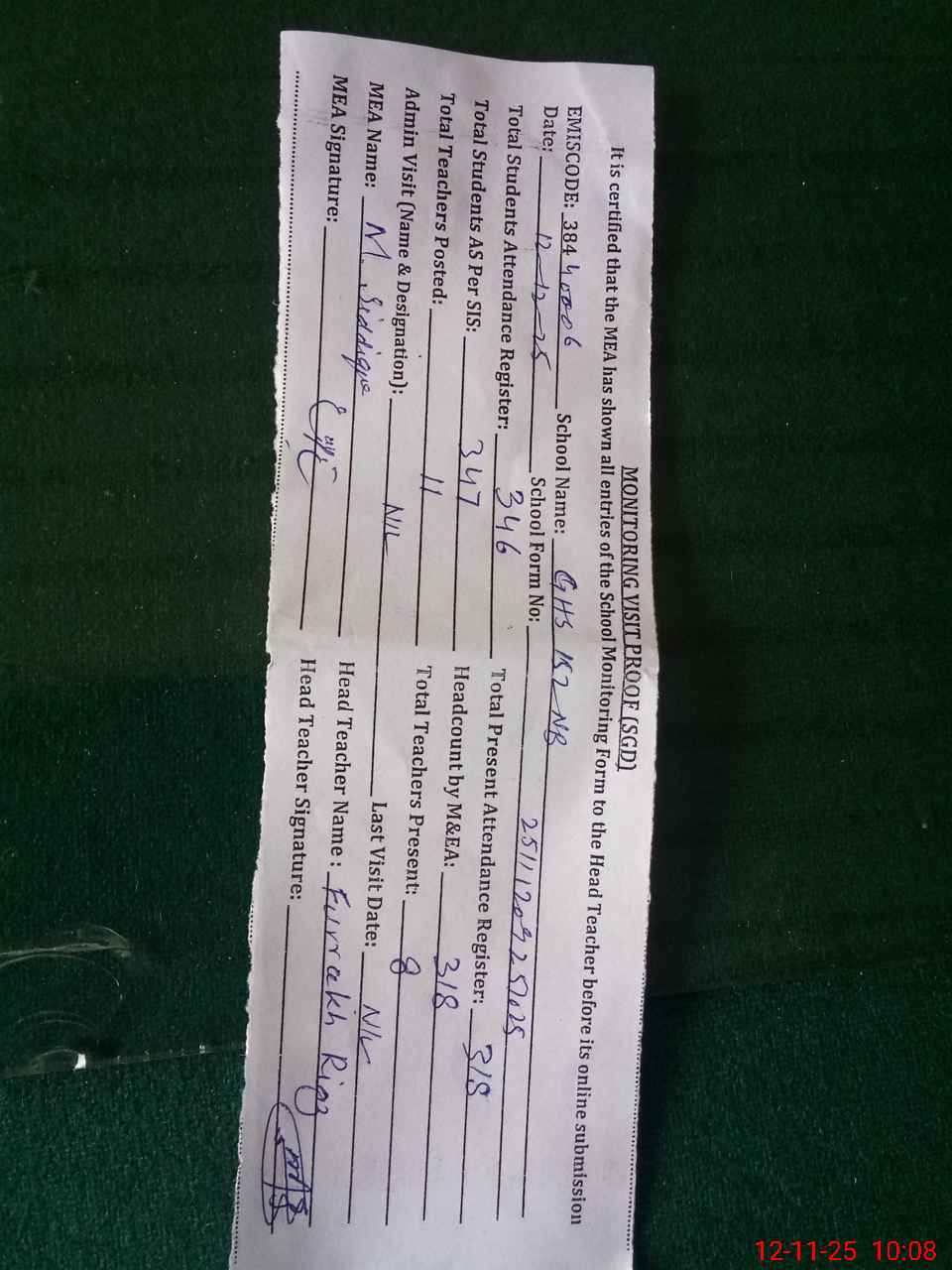 | EMIS Code: 38440006 | Name of School: GHS CHAK NO.152 NB | |||