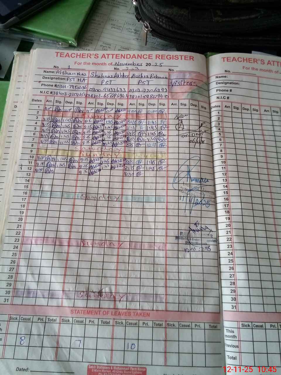 | Name: Af**** Na**** Designation: (School Headmaster's/Headmistress's) PST Phone/Cell Number: 03**** |