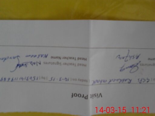 | Name: NA**** SA**** Designation: (School Headmaster's/Headmistress's) EST Phone/Cell Number: 03**** |