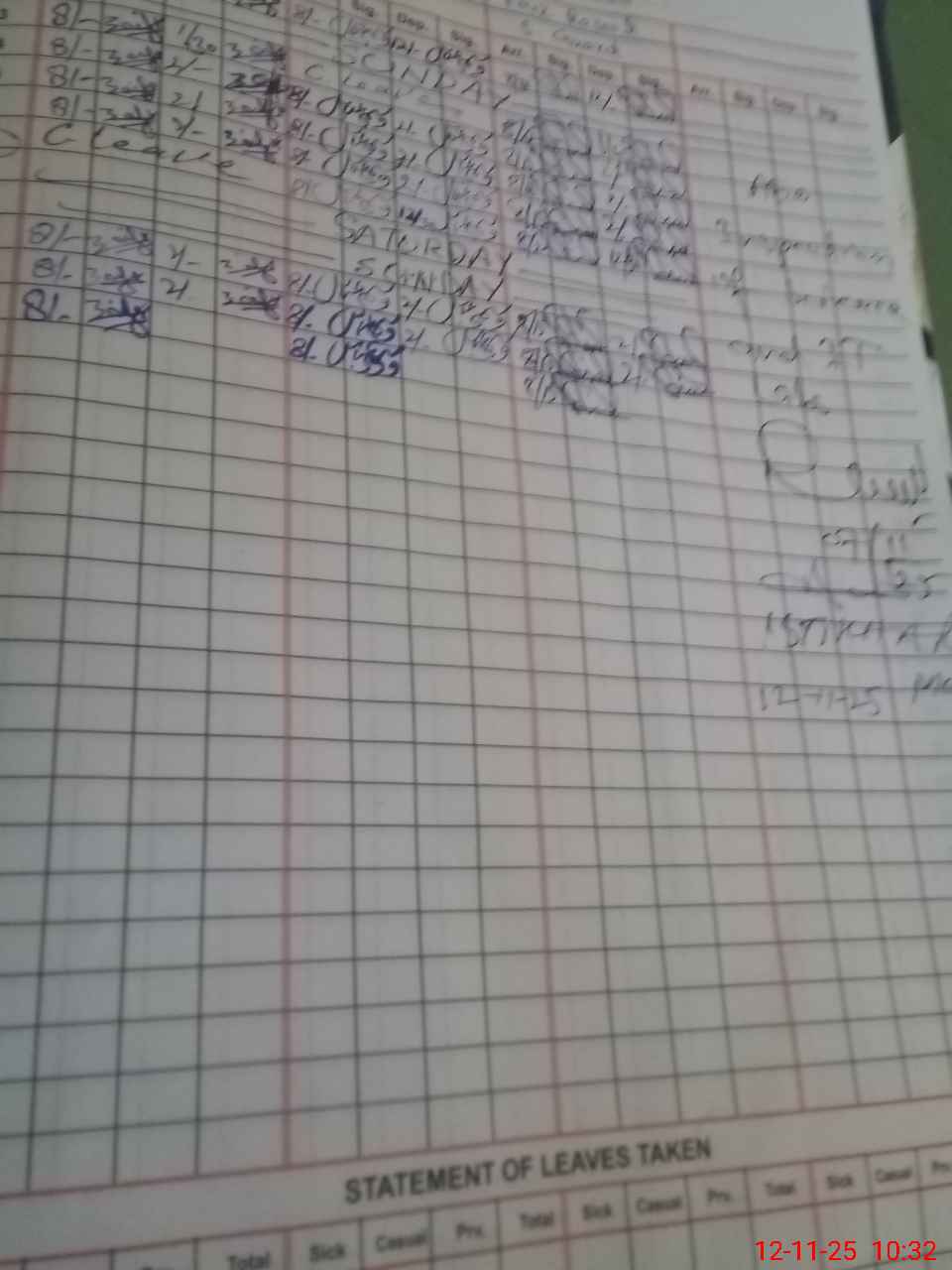 | CNIC | Full Name | Designation | R/C | Absence During Last Calender Month |