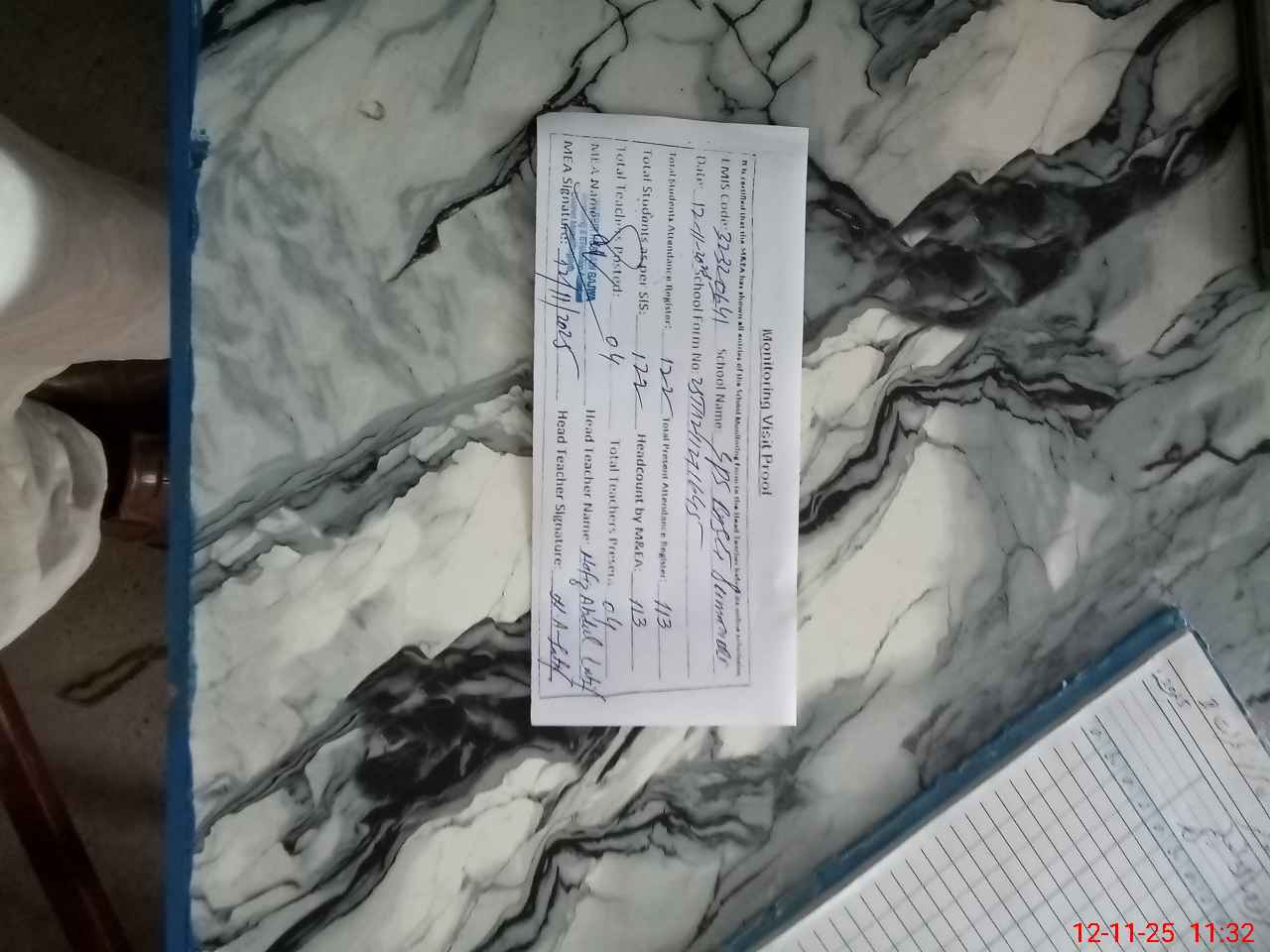 | Attendance Register | Head Teacher | MEA with School | Visit Proof |