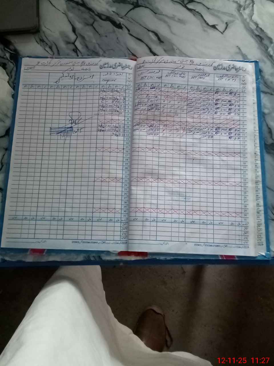 | CNIC | Full Name | Designation | R/C | Absence During Last Calender Month |