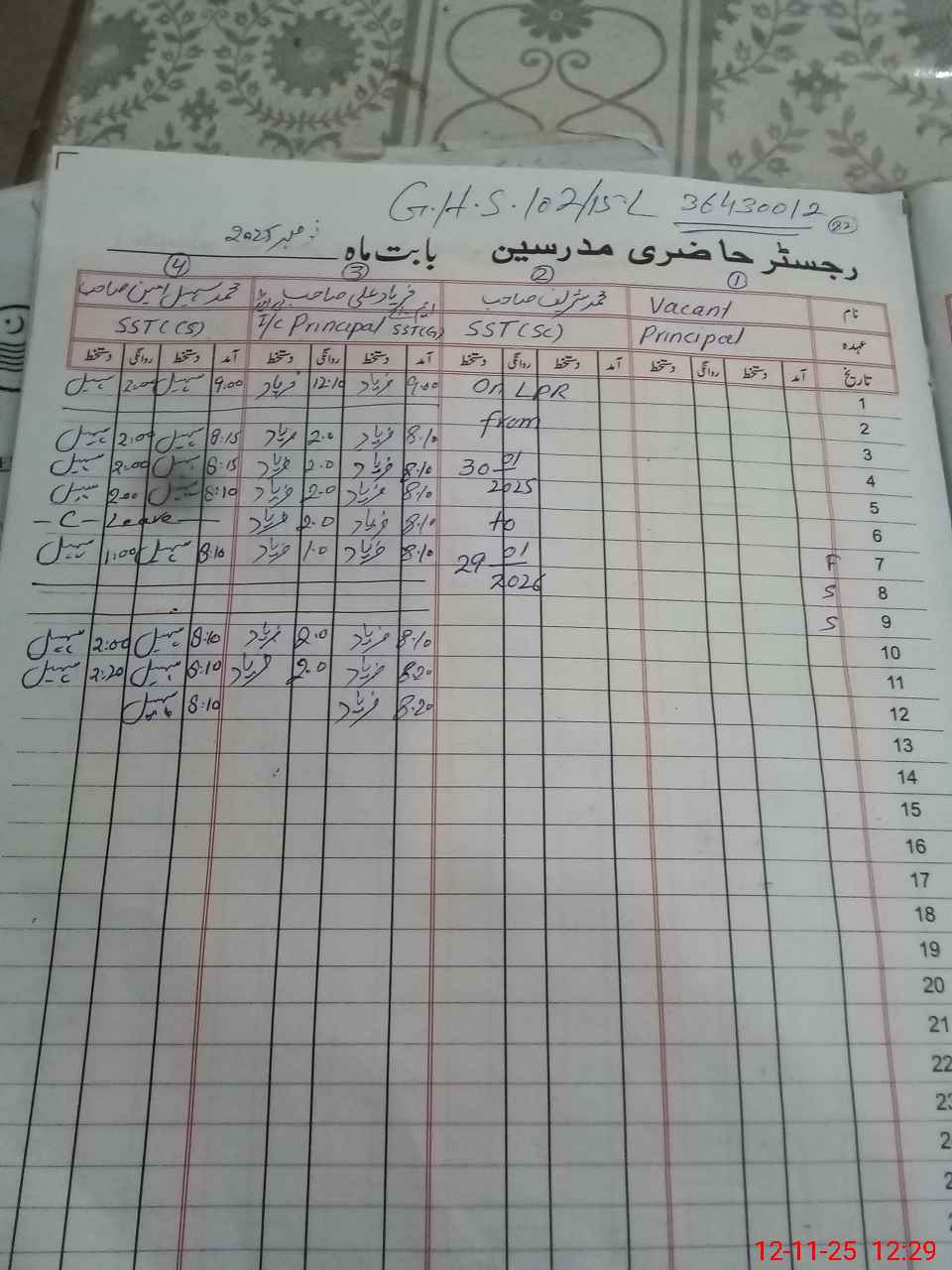 | Name: FA**** AL**** Designation: (School Headmaster's/Headmistress's) SST GENERAL Phone/Cell Number: 03**** |