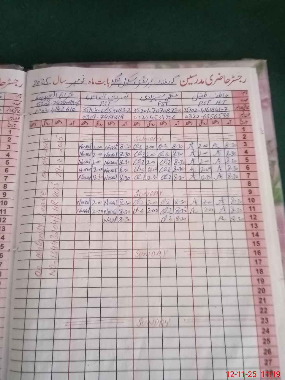 | CNIC | Full Name | Designation | R/C | Absence During Last Calender Month |