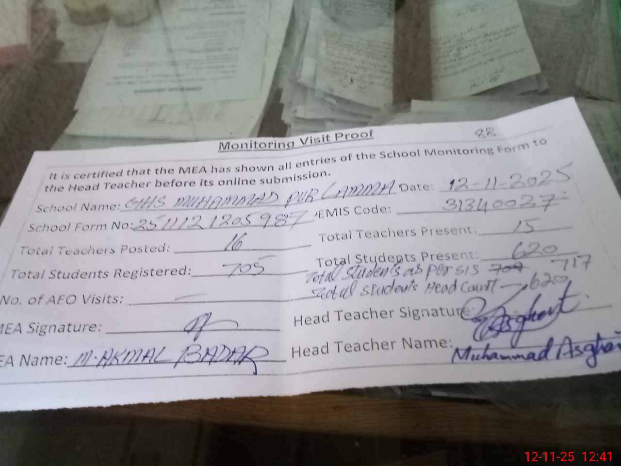 | EMIS Code: 31340027 | Name of School: GHS MUHAMMAD PUR LAMMA | |||