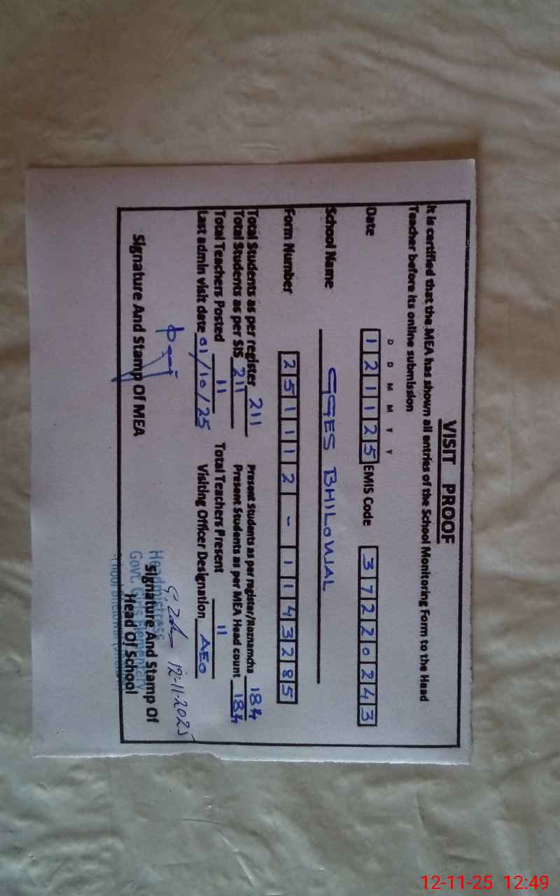 | EMIS Code: 37220243 | Name of School: GGES BHILOWAL | |||