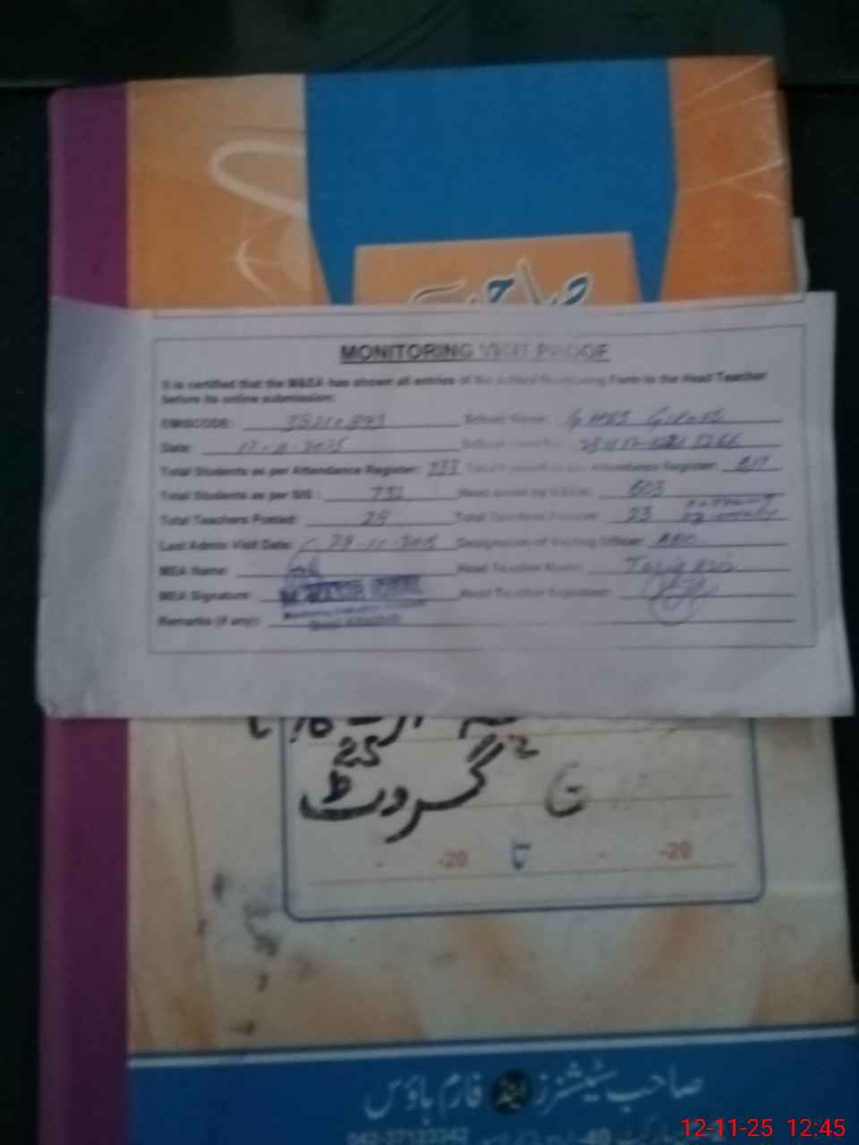 | Attendance Register | Head Teacher | MEA with School | Visit Proof |