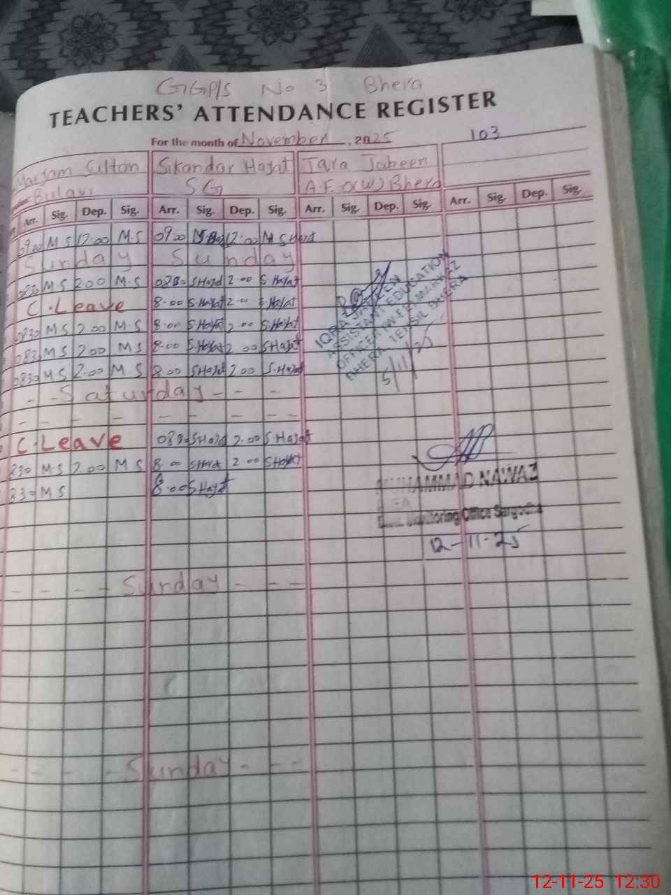 | Name: SU**** SH**** Designation: (School Headmaster's/Headmistress's) PST Phone/Cell Number: 03**** |