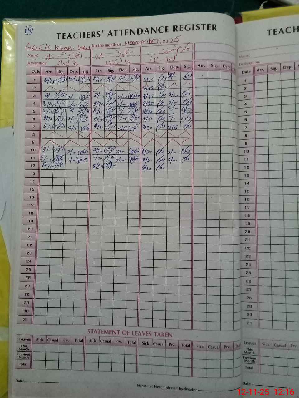 | CNIC | Full Name | Designation | R/C | Absence During Last Calender Month |