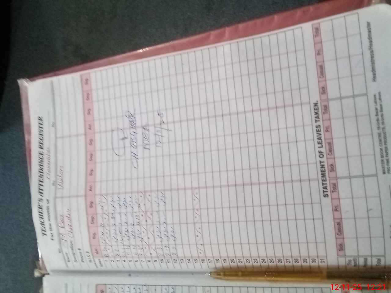 | Remarks (Use Separate Page if Required): J clerk Ali Hamza show on official duty but as per DMO letter he was absent due to old duty letter in school | |||||