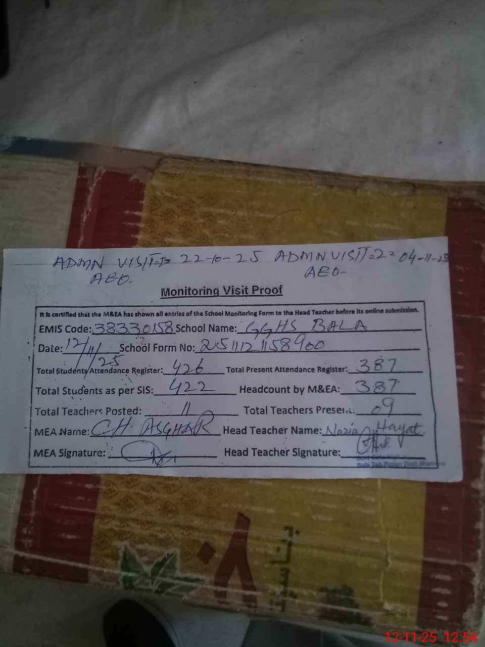 | EMIS Code: 38330158 | Name of School: GGHS BALA | |||