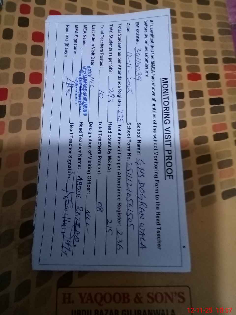 | EMIS Code: 34110039 | Name of School: GHS DOGRAN WALA | |||