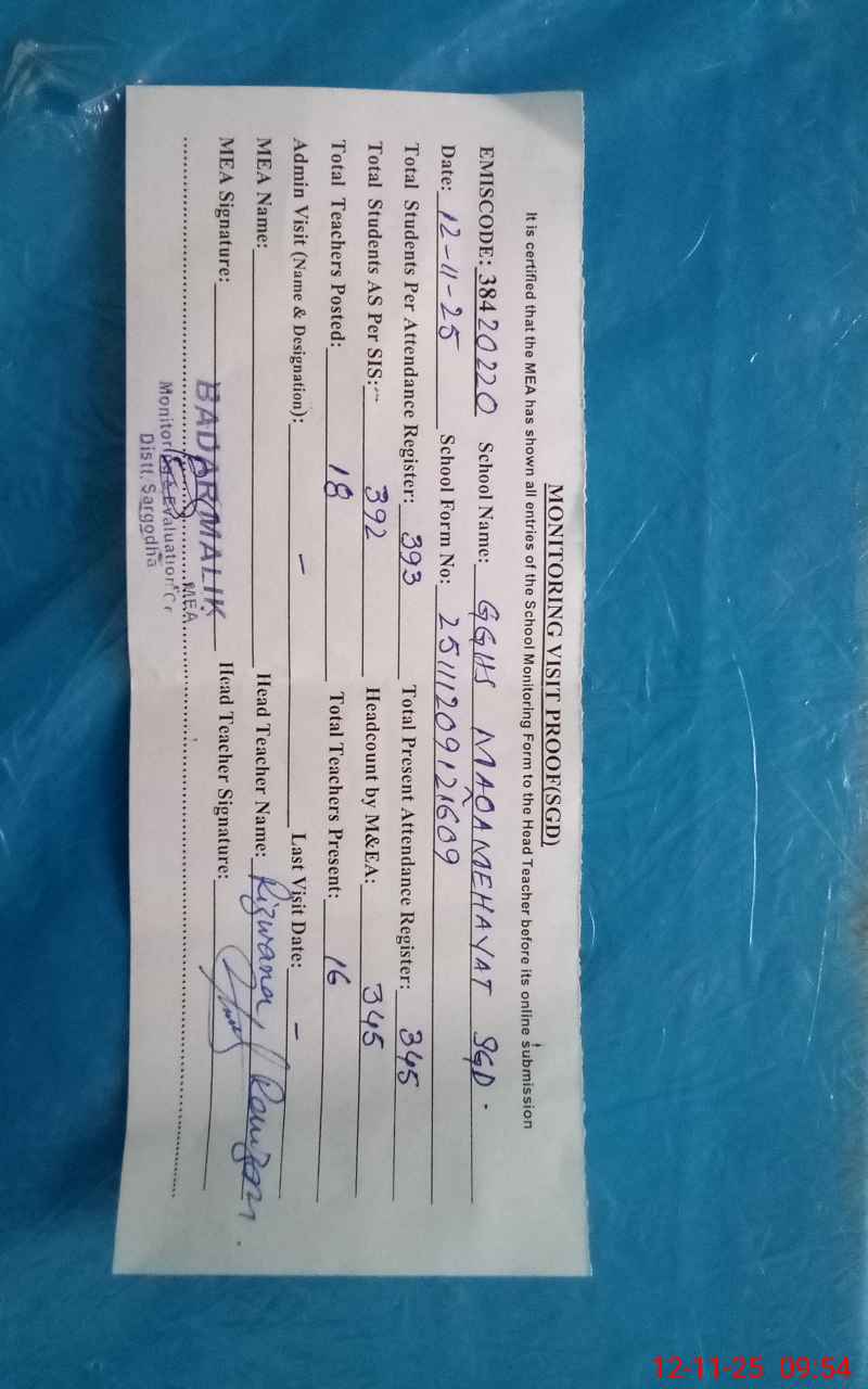 | EMIS Code: 38420220 | Name of School: GGHS MAQAM-E-HAYAT | |||