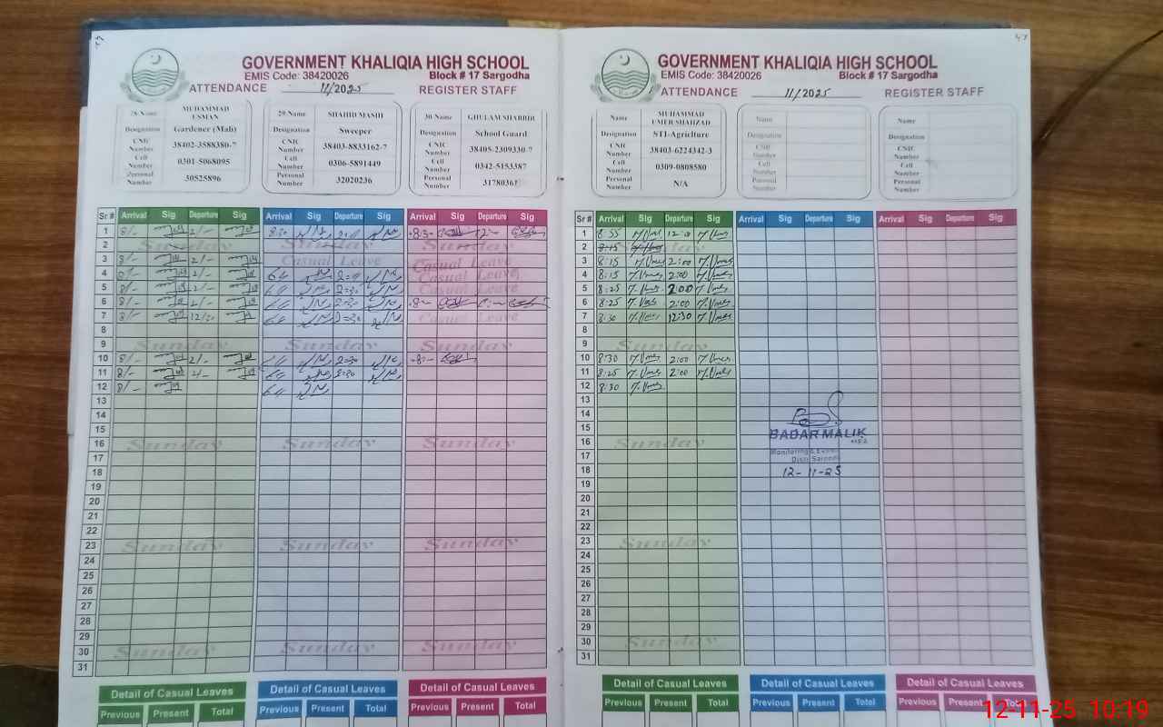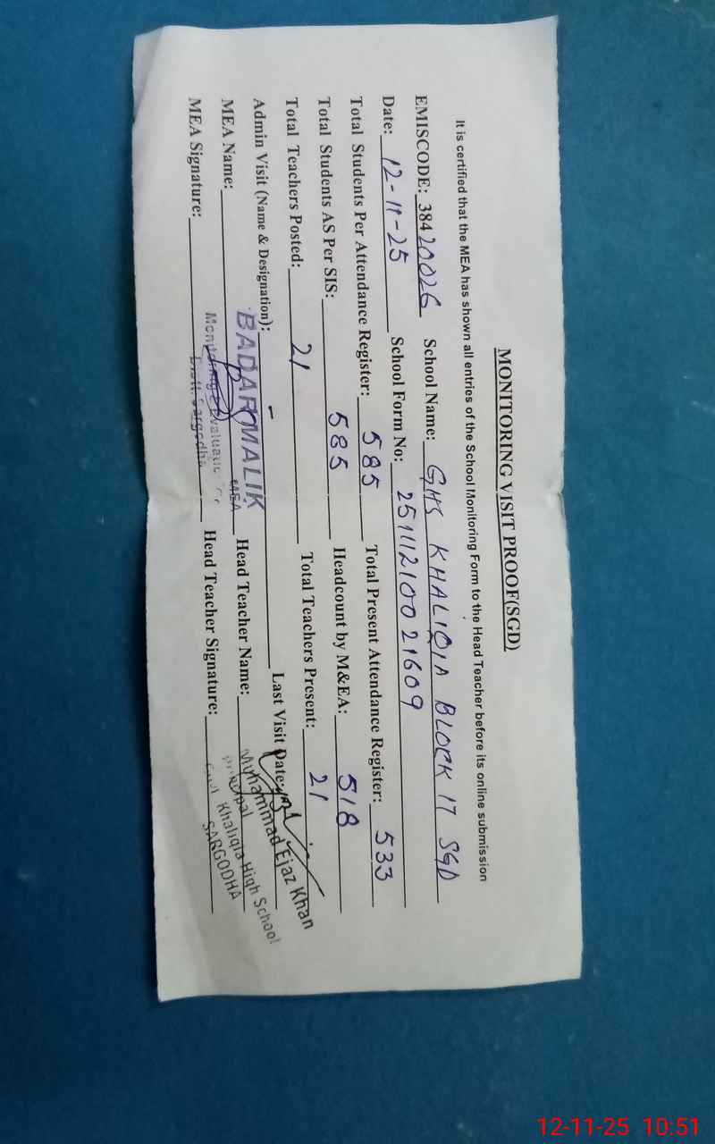 | EMIS Code: 38420026 | Name of School: GHS KHALIQIA BLOCK NO.17 SGD | |||