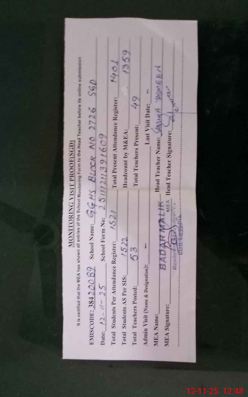 | EMIS Code: 38420089 | Name of School: GGHS BLOCK NO 27/26 SARGODHA | |||