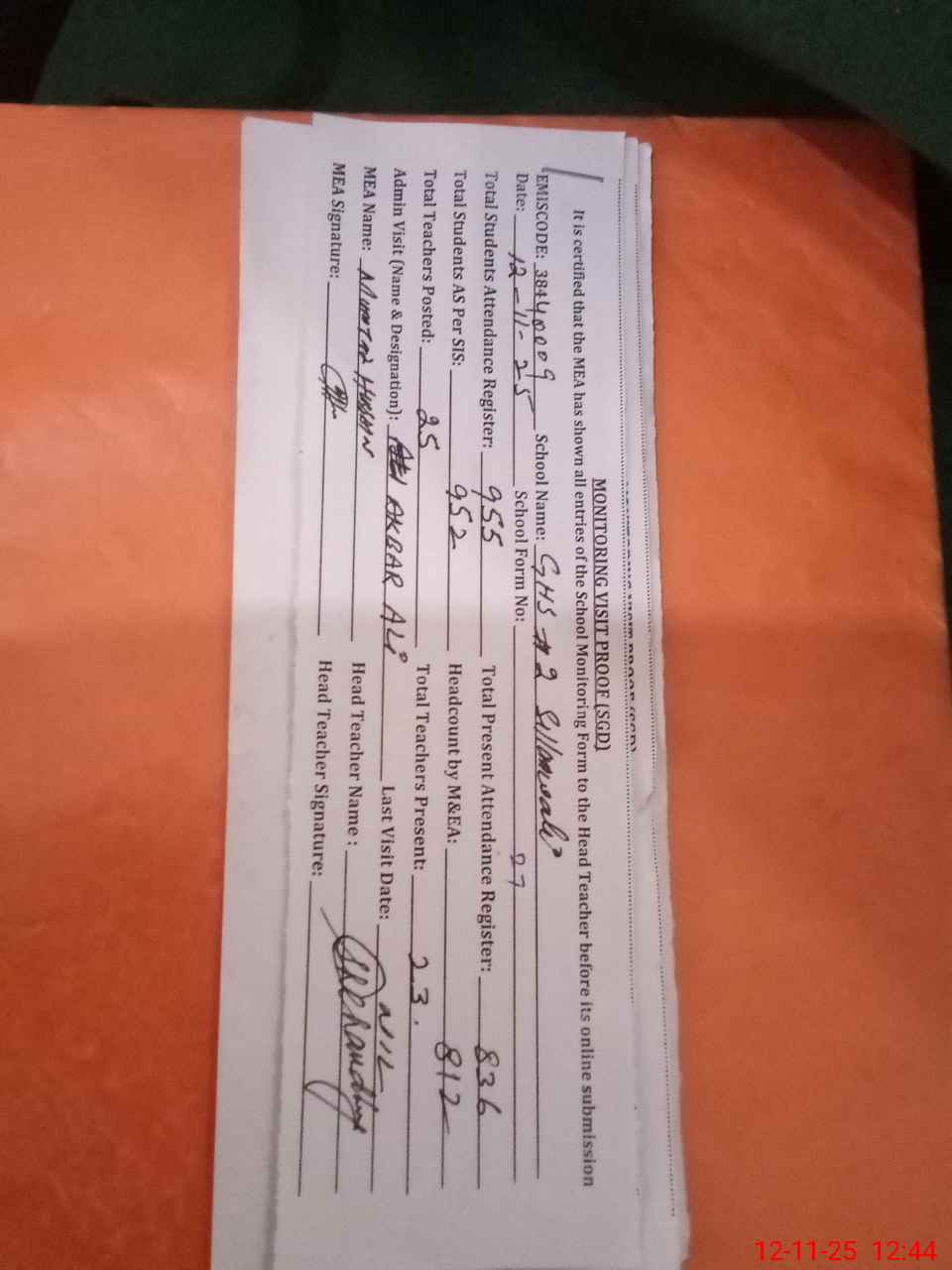 | EMIS Code: 38440009 | Name of School: GHS NO.2 SILLANWALI | |||