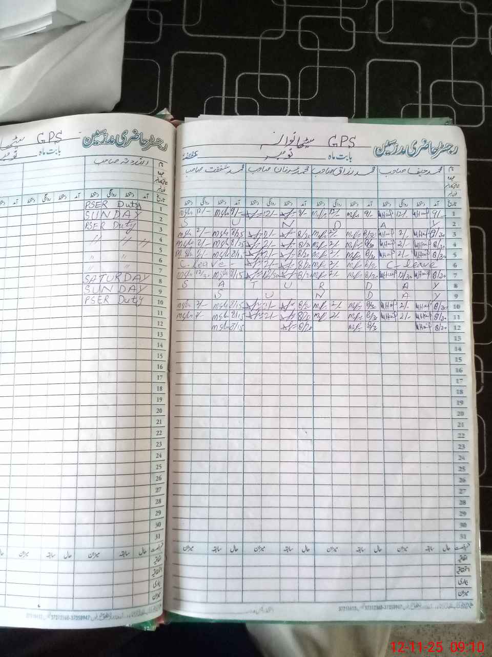 | CNIC | Full Name | Designation | R/C | Absence During Last Calender Month |