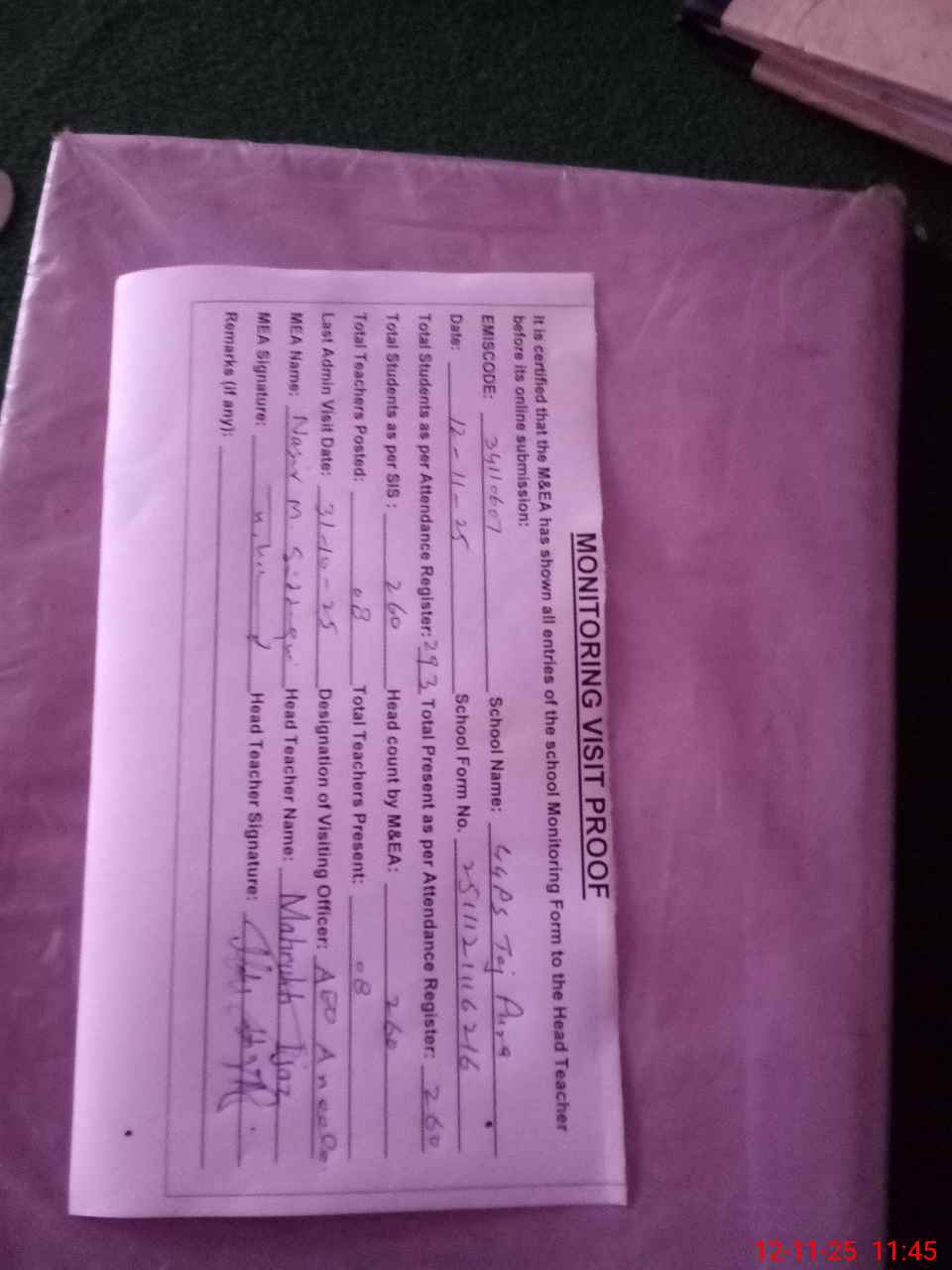 | EMIS Code: 34110607 | Name of School: GGPS TAJ PURA | |||