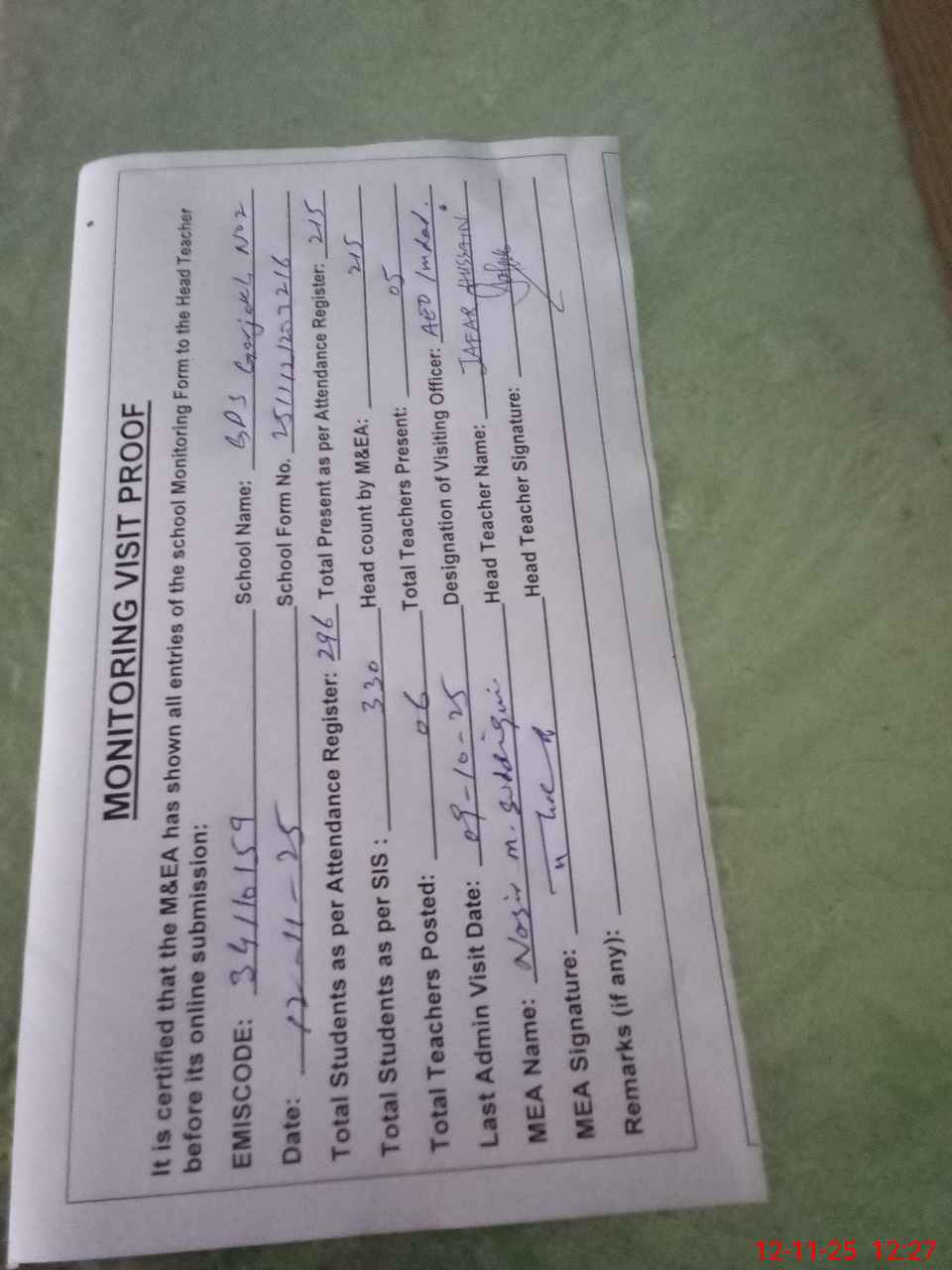 | EMIS Code: 34110159 | Name of School: GPS GHARJAKH NO.2 | |||