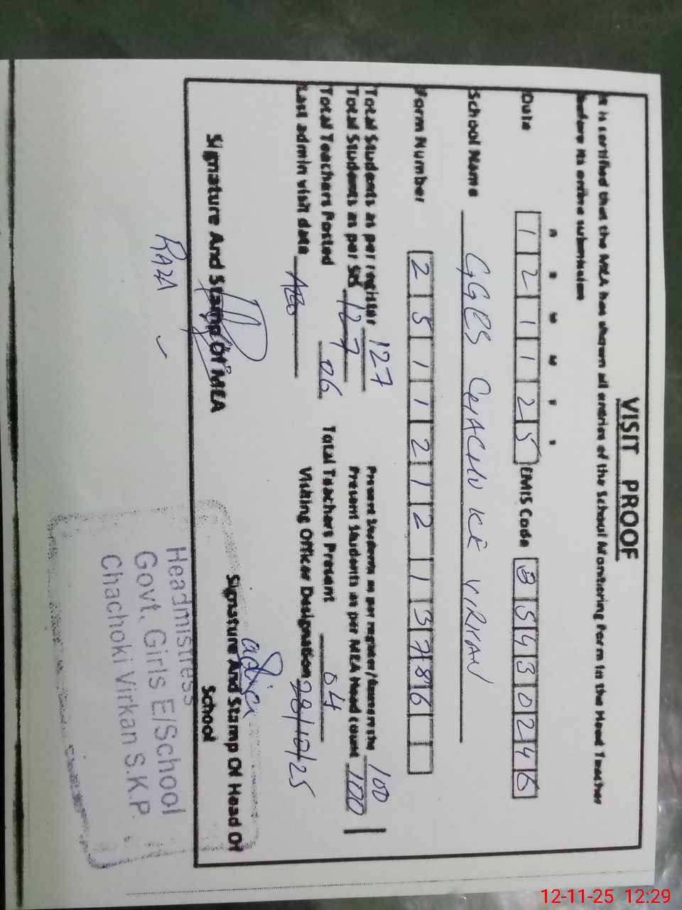 | EMIS Code: 35430246 | Name of School: GGES CHACHOKI VIRKAN | |||