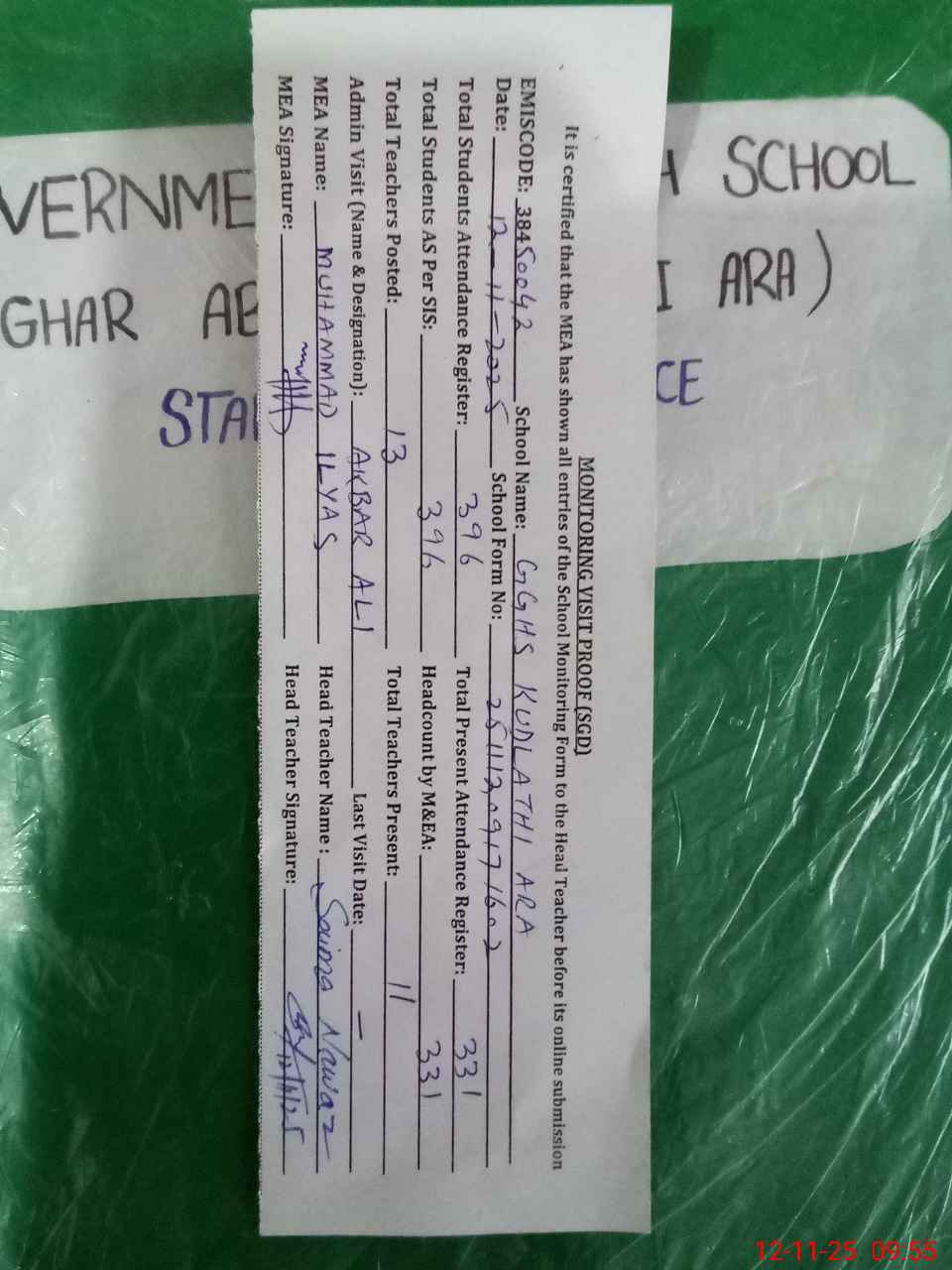 | EMIS Code: 38450042 | Name of School: GGHS KUDLATHI ARA (Asghar abad) | |||
