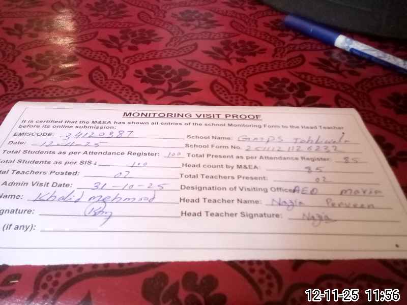 | EMIS Code: 34120387 | Name of School: GMPS TAHLI WALA | |||