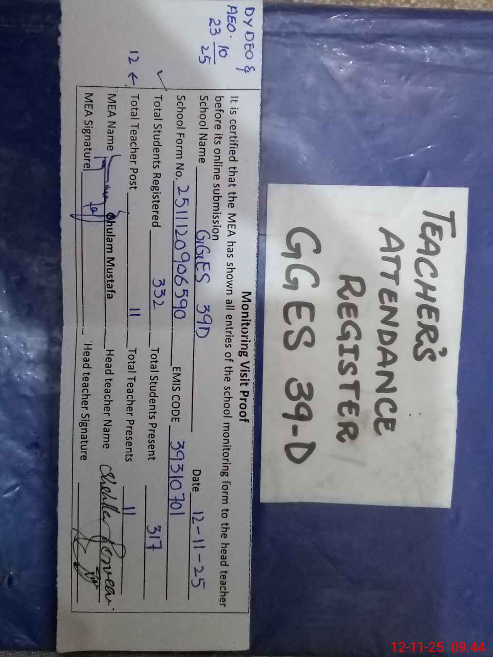 | EMIS Code: 39310701 | Name of School: GGES CHAK NO. 39/D | |||