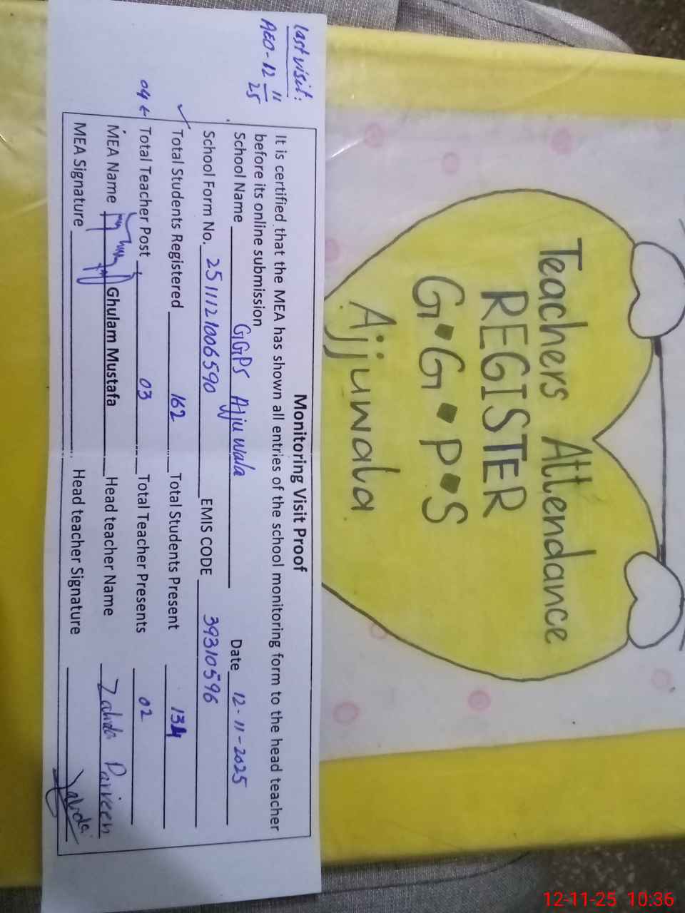| EMIS Code: 39310596 | Name of School: GGPS AJJU WALA | |||