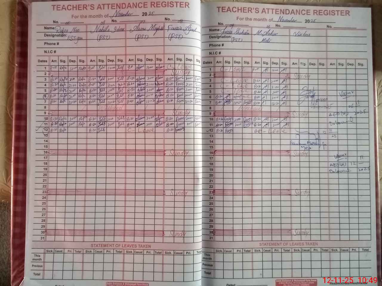 | Remarks (Use Separate Page if Required): Last visit by AEO on 12 November 2025 and Dy DEO on 06 November 2025 Main gate of the school needs repair works | |||||