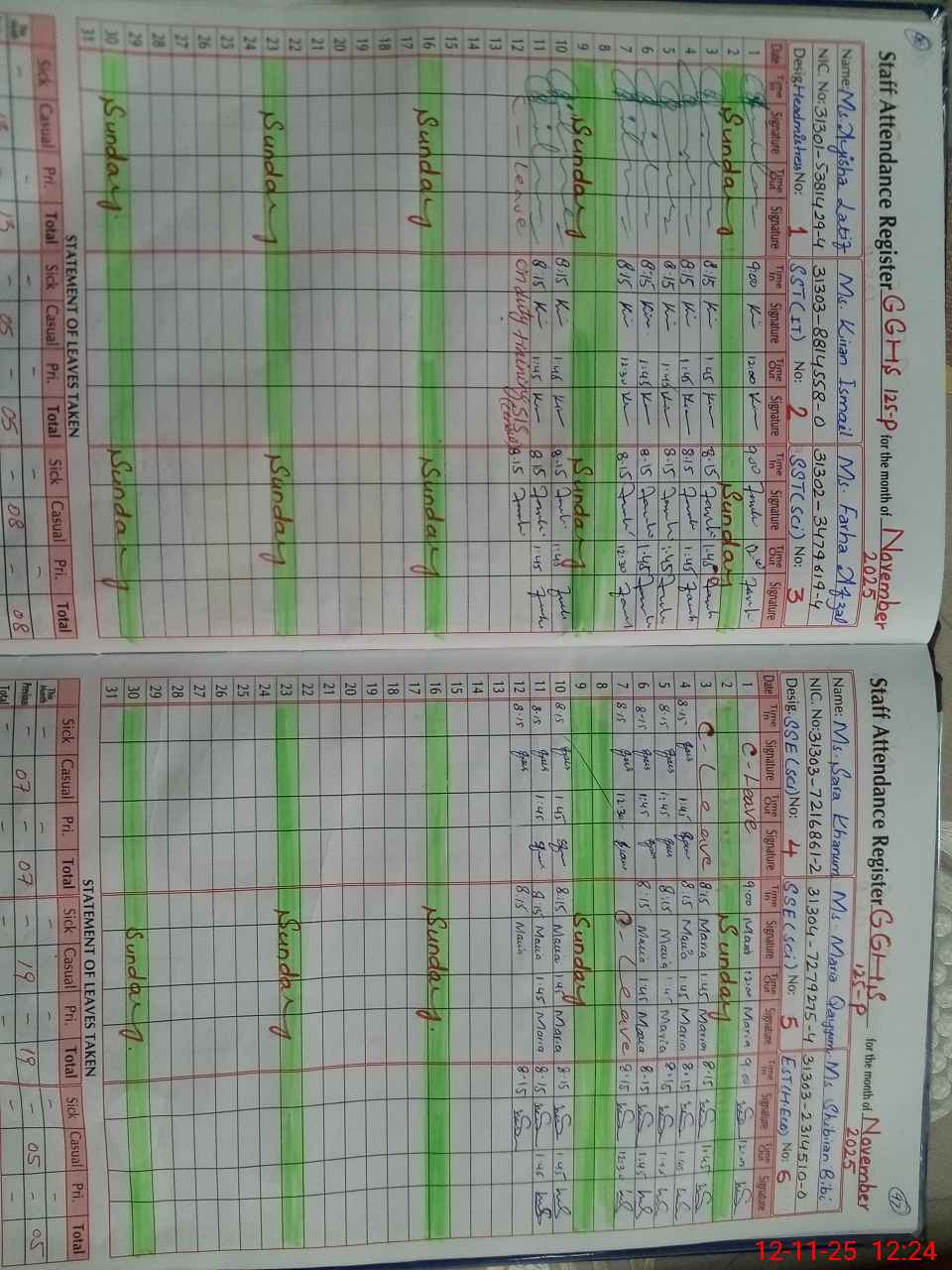 | CNIC | Full Name | Designation | R/C | Absence During Last Calender Month |