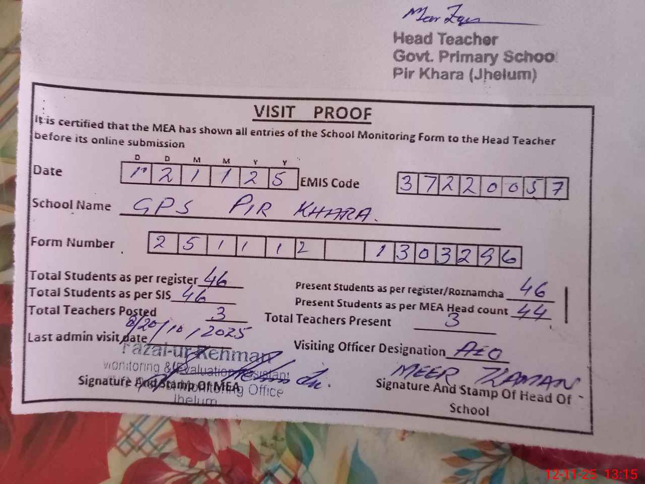 | EMIS Code: 37220057 | Name of School: GPS PIR KHARA | |||