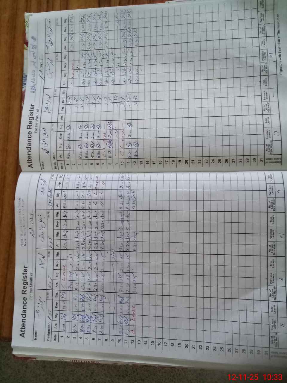 | CNIC | Full Name | Designation | R/C | Absence During Last Calender Month |