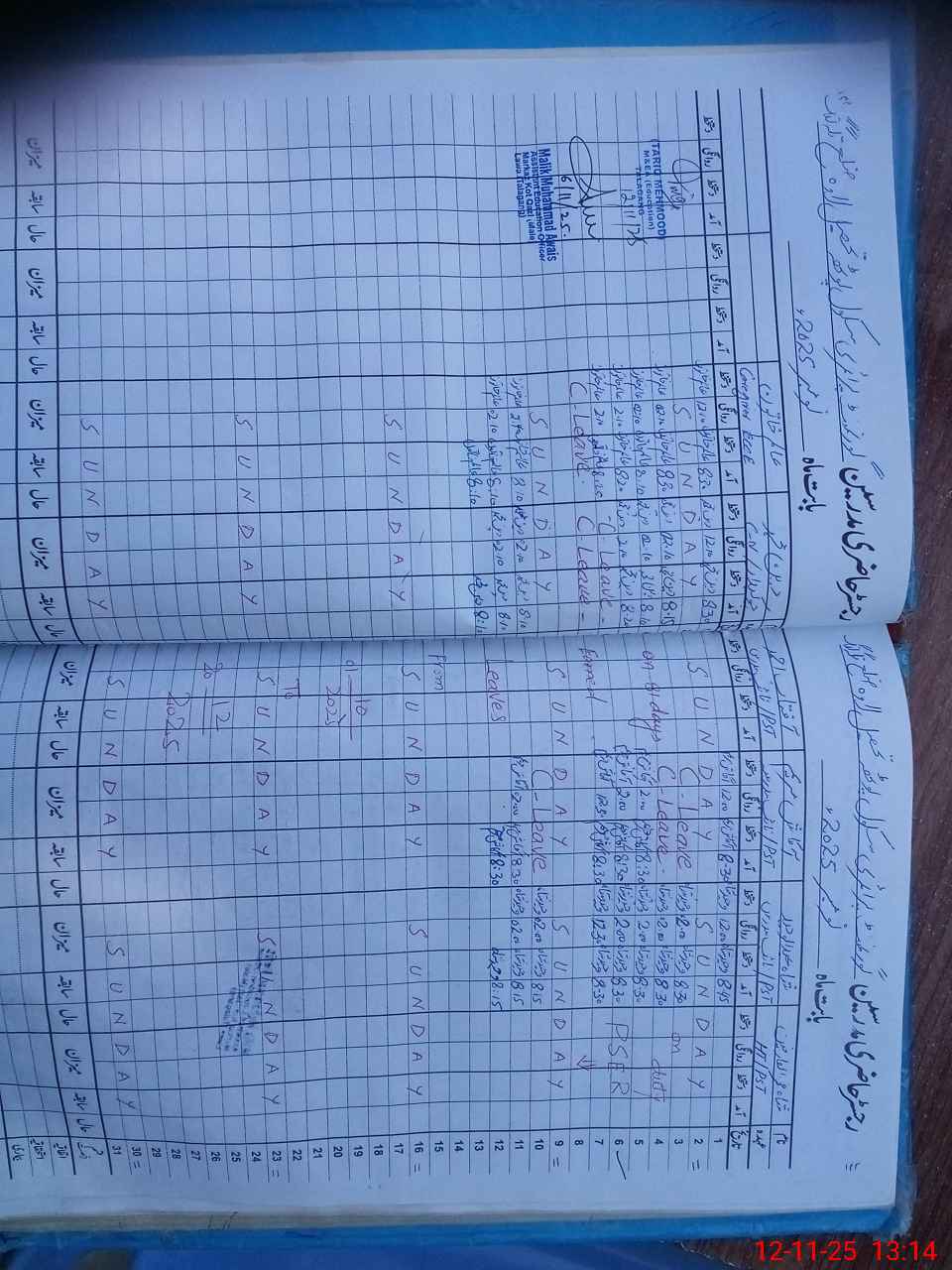 | CNIC | Full Name | Designation | R/C | Absence During Last Calender Month |