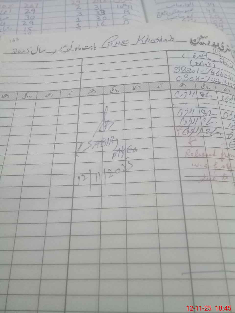 | CNIC | Full Name | Designation | R/C | Absence During Last Calender Month |