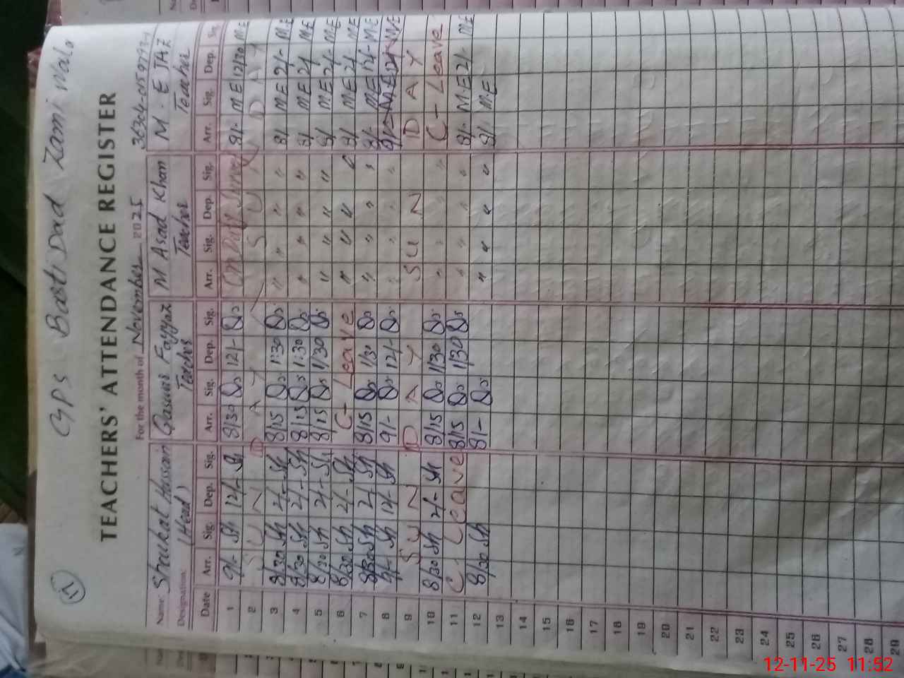 | CNIC | Full Name | Designation | R/C | Absence During Last Calender Month |
