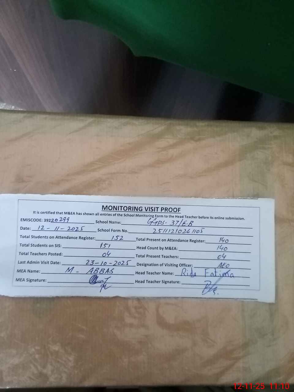 | EMIS Code: 39220299 | Name of School: GGPS 37 EB | |||