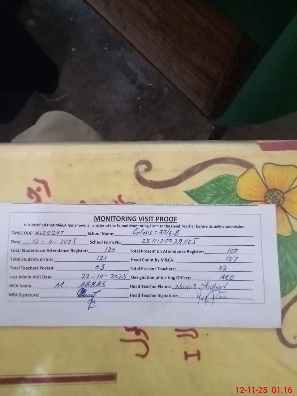 | EMIS Code: 39220297 | Name of School: GGPS 33 EB | |||