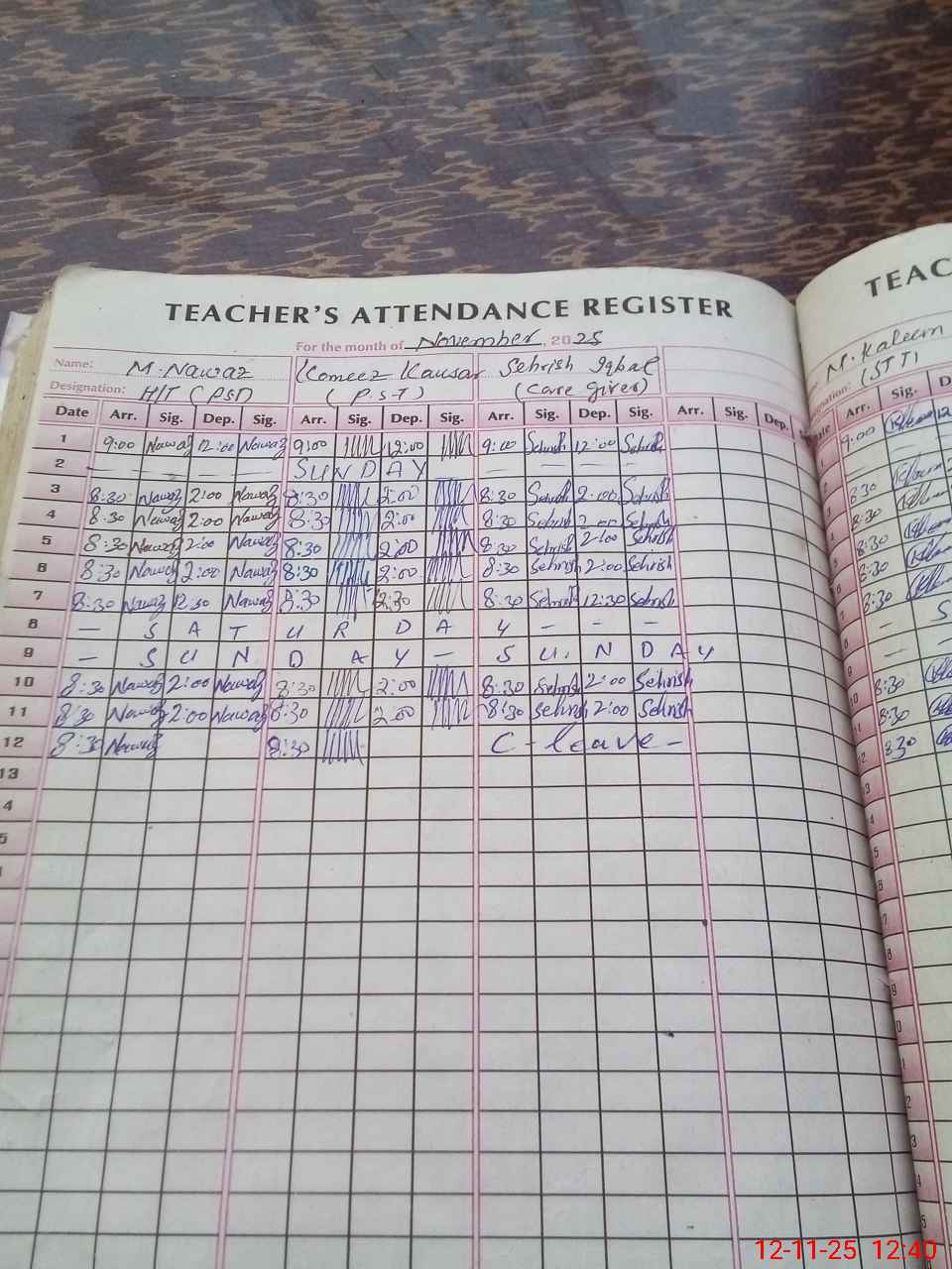 | CNIC | Full Name | Designation | R/C | Absence During Last Calender Month |