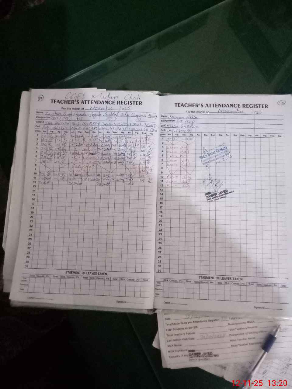 | Name: Za**** Sa**** Designation: (School Headmaster's/Headmistress's) EST Phone/Cell Number: 03**** |