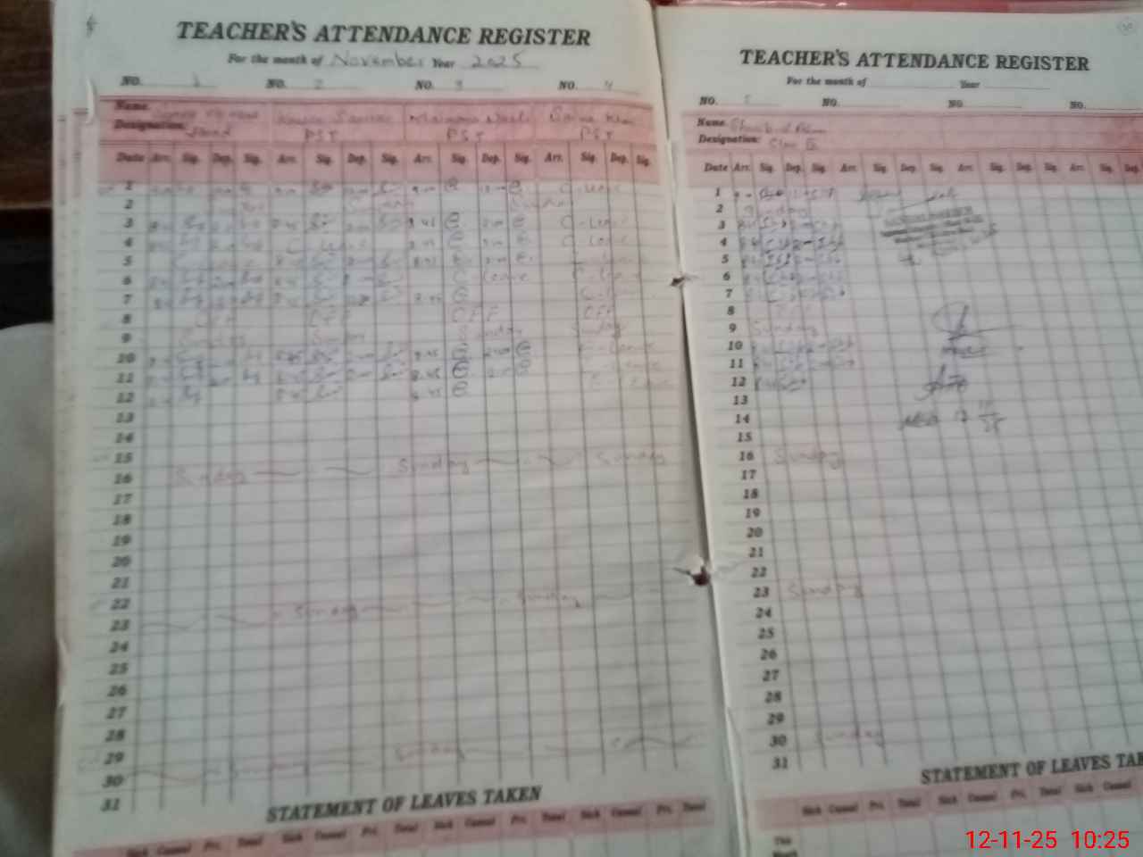 | Leave | Duty | Absent | Maternity | Medical | Ex- Pak |