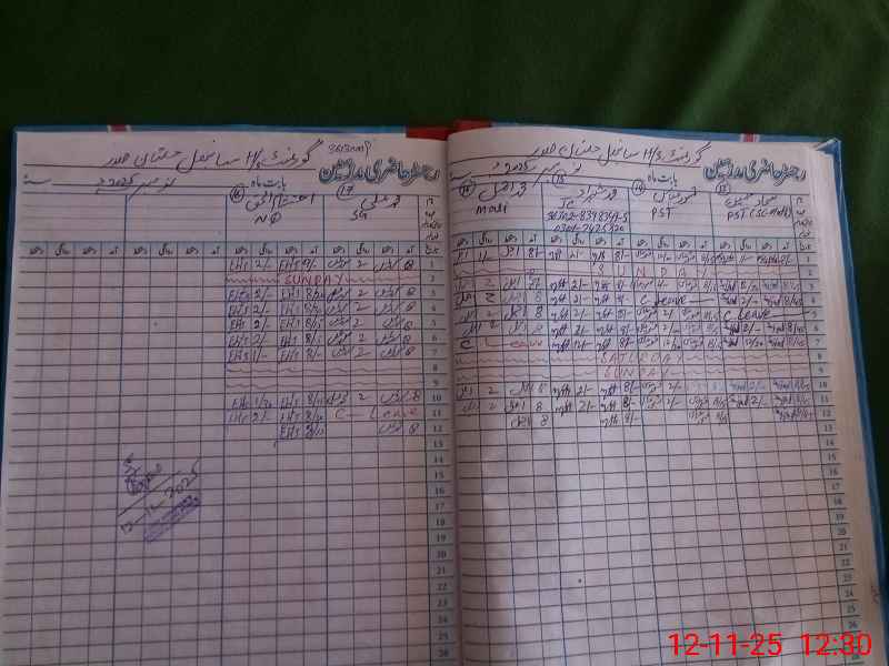 | CNIC | Full Name | Designation | R/C | Absence During Last Calender Month |