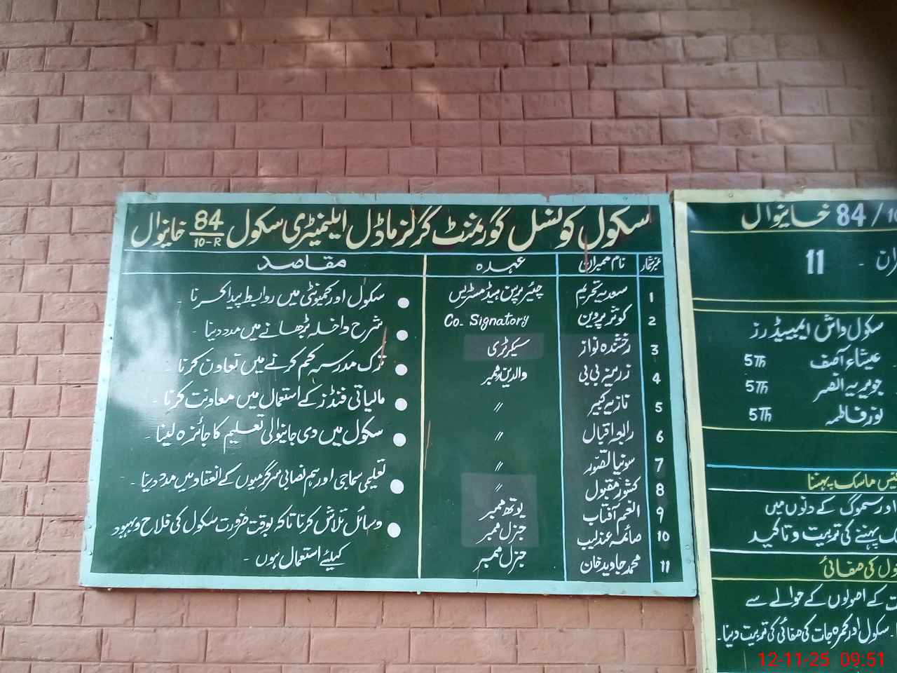 | EMIS Code: 36420426 | Name of School: GMES 84/10-R, KHANEWAL | |||
