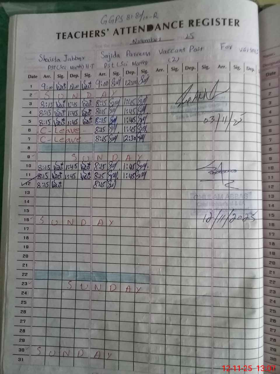 | Name: Sh**** Ja**** Designation: (School Headmaster's/Headmistress's) PST Phone/Cell Number: 03**** |