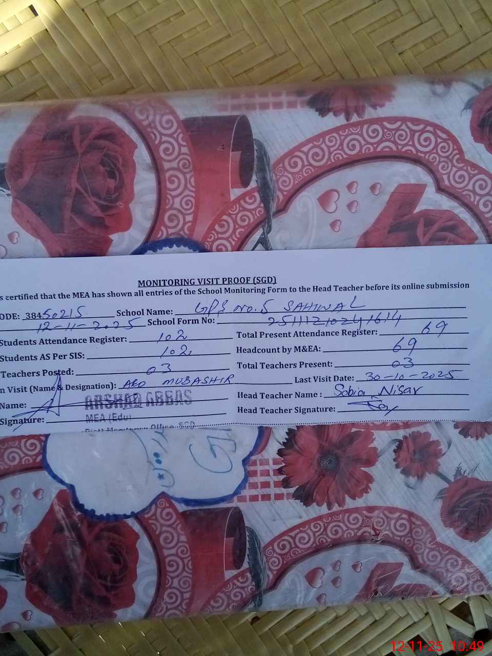 | EMIS Code: 38450215 | Name of School: GPS NO.5 SAHIWAL | |||