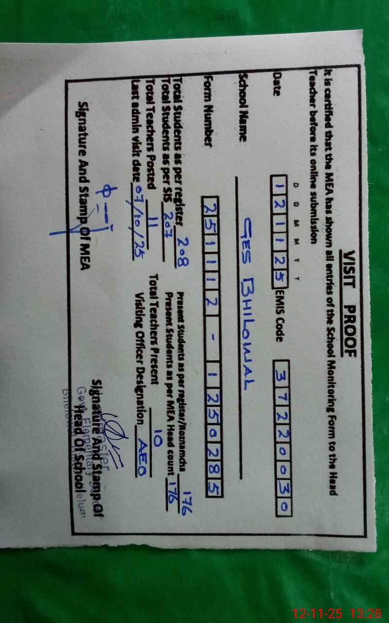 | EMIS Code: 37220030 | Name of School: GES BHILOWAL | |||