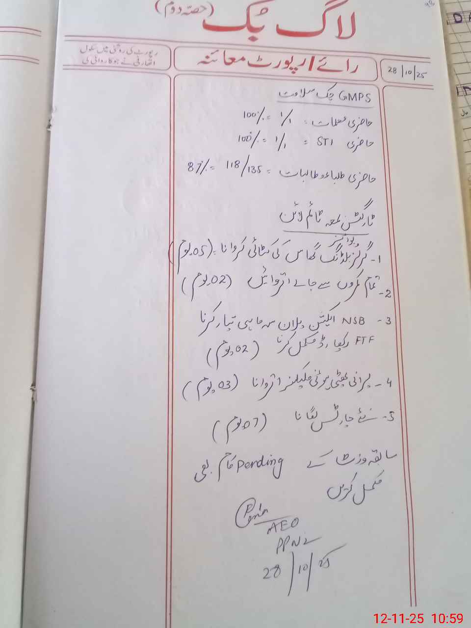 | Remarks (Use Separate Page if Required): Books record D 4 Incomplete Shazia Zafar sti present in this school | |||||