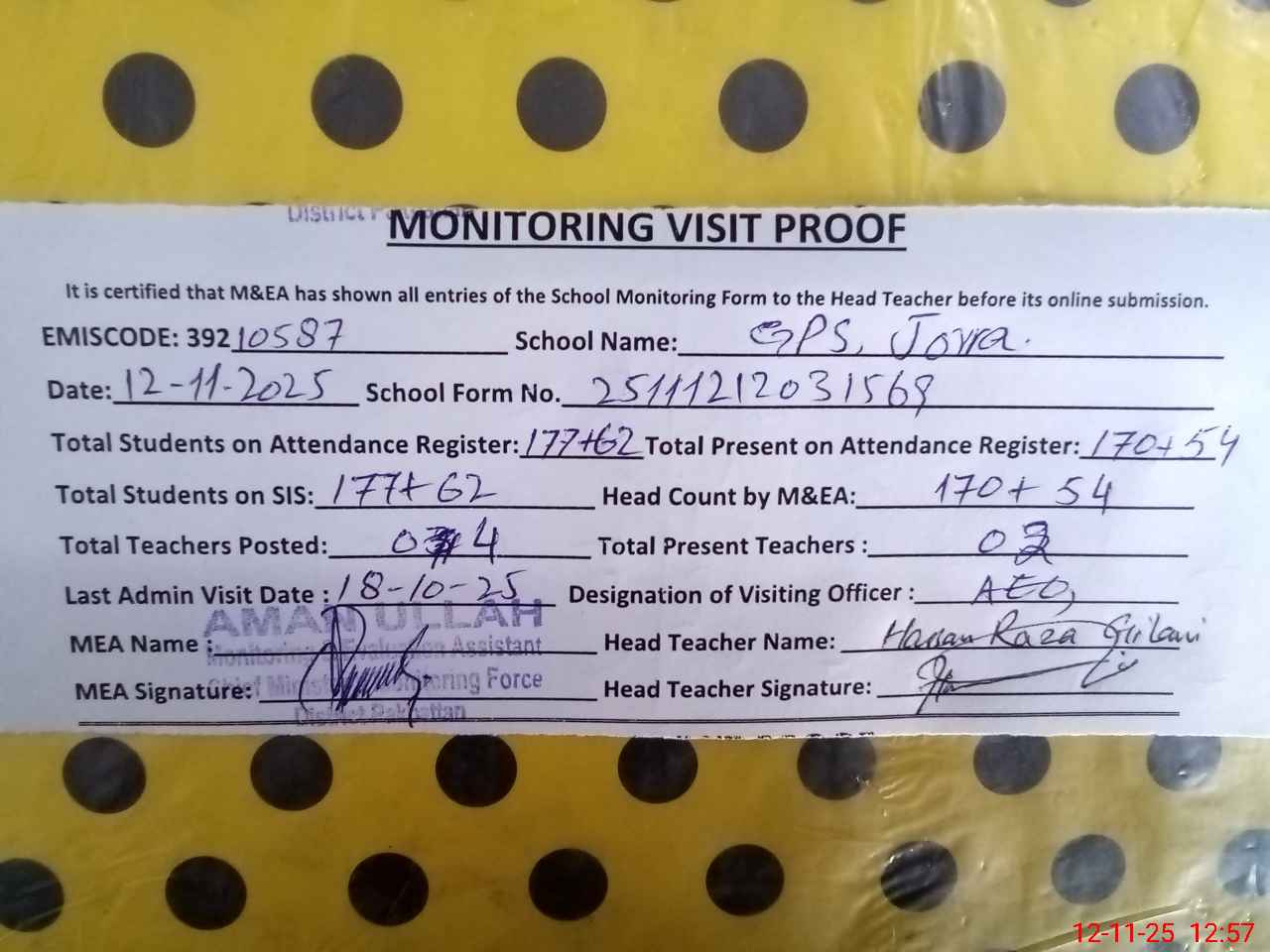 | EMIS Code: 39210587 | Name of School: GPS JORRA | |||